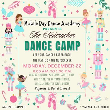 Let your dancer come and experience the magic of the Nutcracker with us. They will have a blast wearing their Christmas pajamas as they learn a Nutcracker themed dance, create Christmas crafts, hear the story of the Nutcracker from a special character guest and SO MUCH MORE!