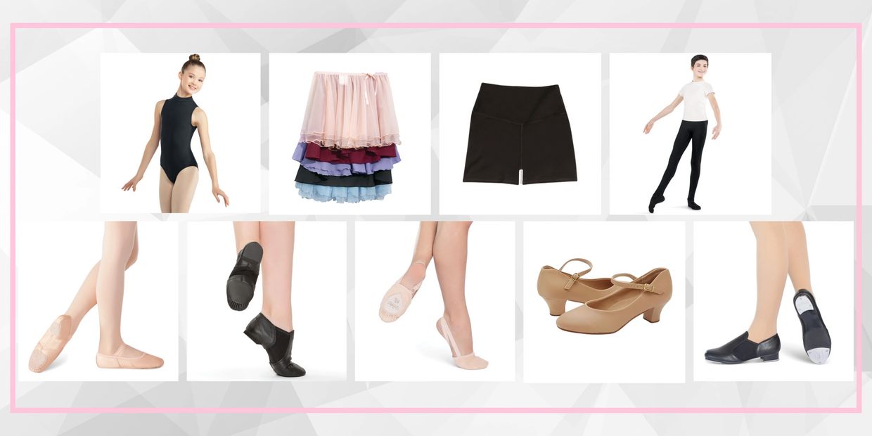 Leotard • Ballet Skirt or Black Bootie Shorts • Pink Ballet Shoes • Black Jazz Shoes • Black Tap Shoes
